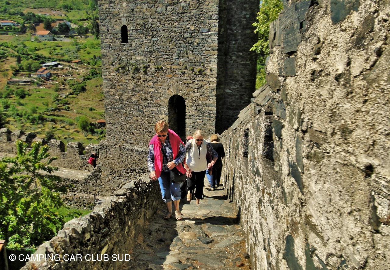 Située en haut d'un rocher à plus de 860 mètres d'altitude, on ne distingue pas les remparts de la pierre, dans cette ville médiévale paisible que le visiteur découvre dans les ruelles escarpées aux nombreuses marches. Le château fort a été construit au xiiie siècle puis repris au xviie siècle. Le chemin de ronde est en parfait état.
