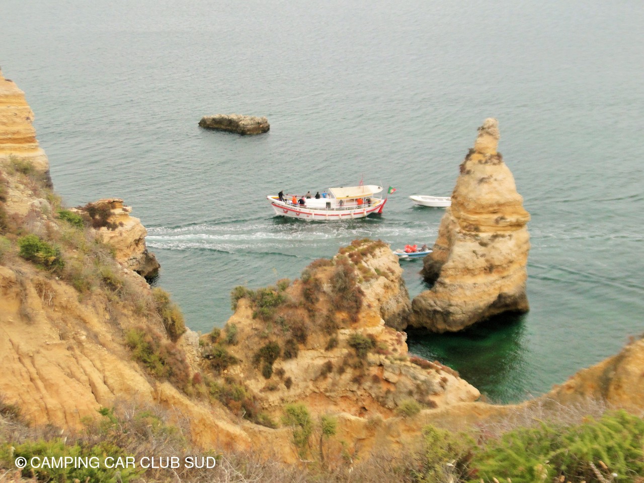 Lagos se trouve dans la région de l'Algarve, région très touristique de par son climat, ses paysages et ses loisirs. C'est un peu notre côte d'azur Côté climat, Côté paysage, il y a d'immenses plages de sable séparées par des falaises de roche friable, sculptées par l'océan où se sont donc formées d'innombrables grottes et cheminées que l'on peut visiter (pour certaines à marée basse uniquement) avec un guide, des pêcheurs du coin dans leur propre barque, et c'est ce que nous avons fait. Magnifique, vraiment impressionnant