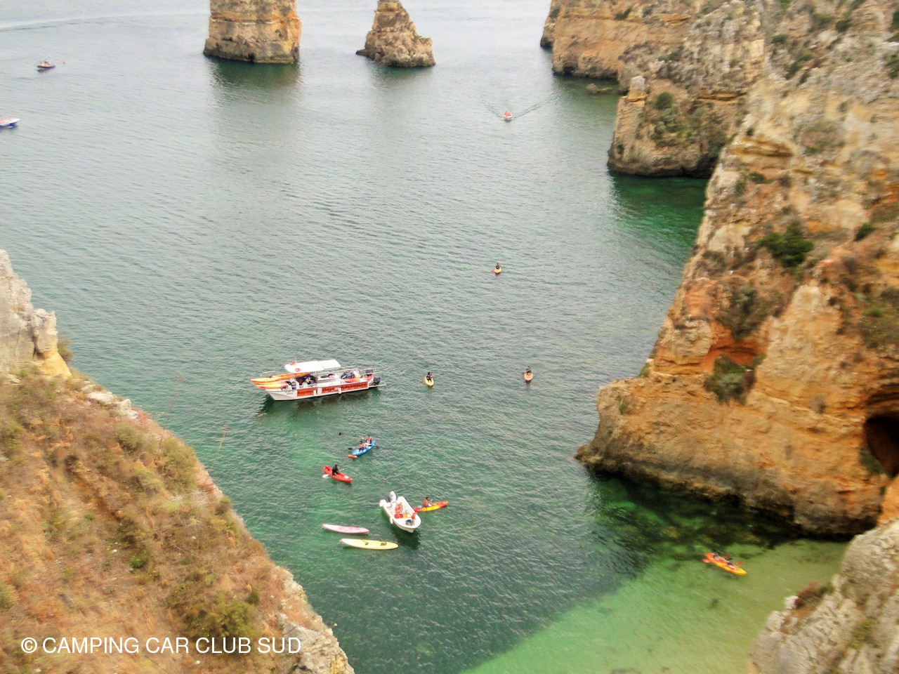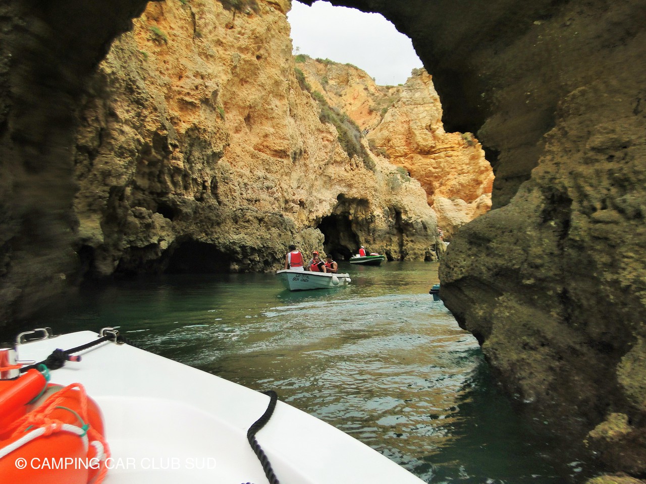Lagos se trouve dans la région de l'Algarve, région très touristique de par son climat, ses paysages et ses loisirs. C'est un peu notre côte d'azur Côté climat, on a quand même eu 13° le matin dans le carré c'est un peu frisquet, par contre les journées sont chaudes. Côté paysage, il y a d'immenses plages de sable séparées par des falaises de roche friable, sculptées par l'océan où se sont donc formées d'innombrables grottes et cheminées que l'on peut visiter (pour certaines à marée basse uniquement) avec un guide, des pêcheurs du coin dans leur propre barque, et c'est ce que nous avons fait. Magnifique, vraiment impressionnant et beaucoup plus rassurant !