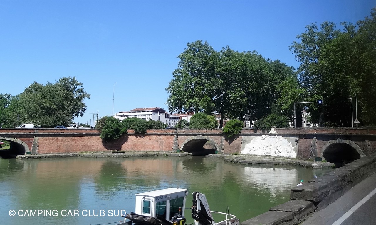 Nous sommes aux ponts jumeaux, sur le port de l'embouchure, c'est l'extrémité occidentale du Canal du Midi, à proximité de la Garonne. Malheureusement, la jonction avec la Garonne n'existe plus, si on veut la rejoindre, il faut passer par le Canal de Brienne.