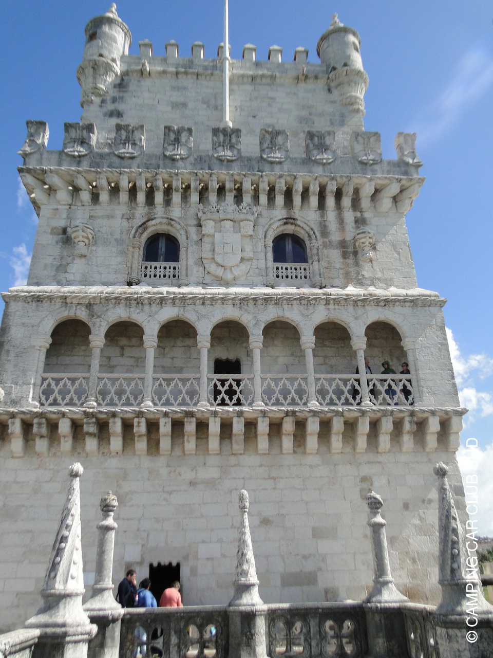 La tour de Belém fut construite afin de servir à la fois de porte d'entrée à la ville de Lisbonne mais aussi en tant que partie intégrante du système de défense protégeant l'embouchure du Tage et le monastère des Hiéronymites, lesquels constituaient des points stratégiques pour envahir la ville. Ce système de défense fut commencé par le roi Jean II de Portugal (1455-1495), qui fit construire les forteresses de Cascais et de São Sebastião da Caparica. Les rivages de Belém étaient protégés par un vaisseau, la Grande Nau, qui fut remplacée par la tour de Belém au cours des cinq dernières années du règne du roi Manuel Ier de Portugal